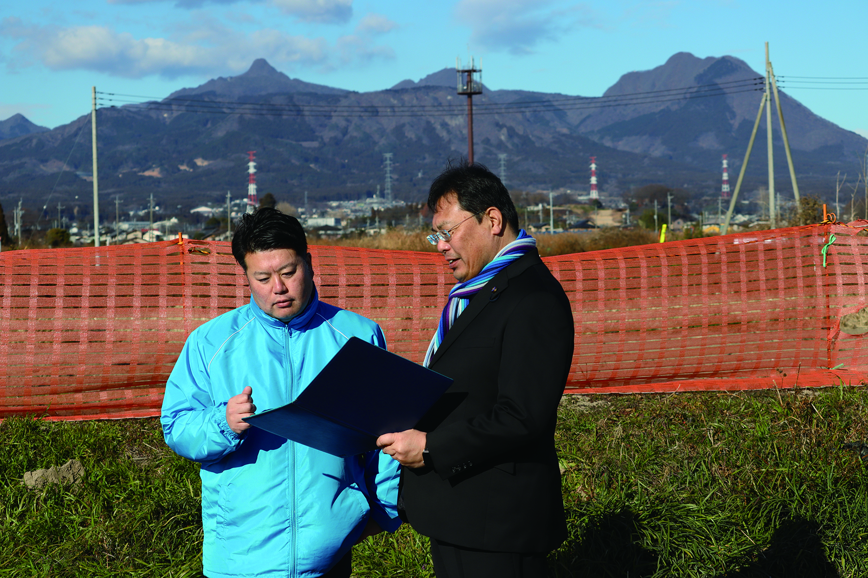 近隣住民の生活環境へ配慮しながらも雇用創出、人口増が期待できる企業誘致に貢献します。地元の方々と開発を始めた県議と現地にて。